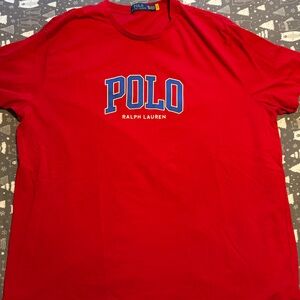 Vibrant red tee with bold Polo logo. From my personal collection of well cared for clothing, this shirt is like new and is a big and tall size 3 XB Soft fabric, short sleeves. Ideal for everyday style.