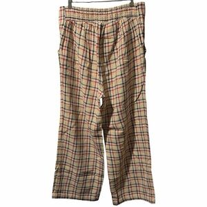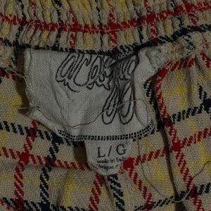 Ace & Jig Polly Pant in Jasper plaid. Cropped flat front pant with subtle kick hem. Pulls on with elasticated waistband at back and side on seam pockets. Midweight singlecloth natural plaid with stripes of navy, red, and yellow.