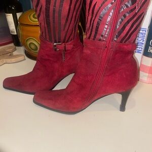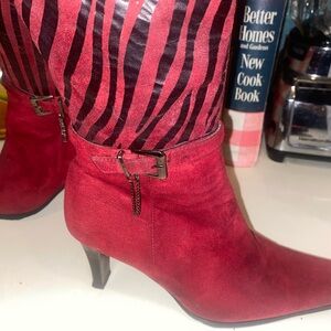 Women Vintage boots heels booties 80s Red tiger stripe suede bootie punk espo 37