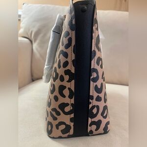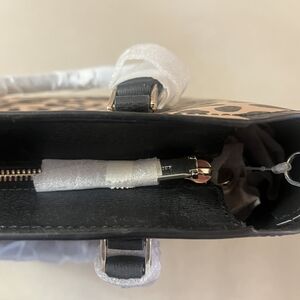 Chic satchel with bold leopard print. Features comfortable handles and stylish look.