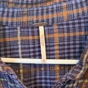 Free people break my stride Top purple metallic thread boxy button down LARGE