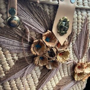 Elegant woven tote with floral design. Features durable handles and secure closure. Ideal for everyday use.