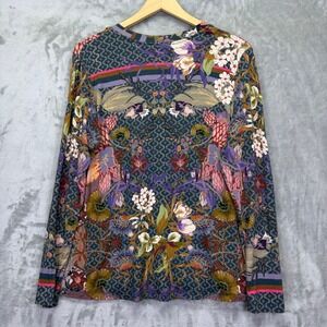 Johnny Was Womens Aran Flower Favorite Swing Tee Top Long Sleeve Medium V-Neck
