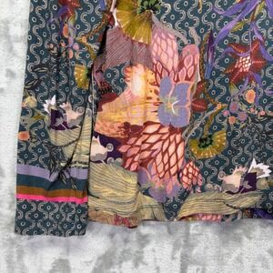Johnny Was Womens Floral V-Neck Bamboo Long Sleeve Top Size M. This beautiful top features a vibrant multi-color floral and botanical print on a soft bamboo-blend fabric. It has a flattering V-neckline and long sleeves, perfect for a bohemian or casual chic look.