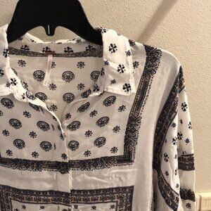Free People Little Secrets boho scarf print oversized longline button up blouse