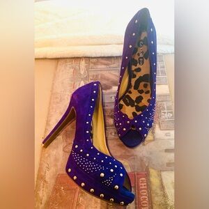 Gianni Bini Studded Purple Suede Heels Peep toe featuring gold stud embellishments.