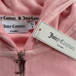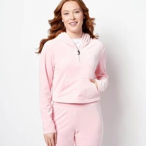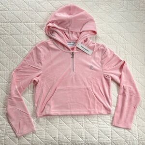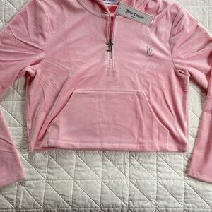 NWT Juicy Couture Pink Velour Half-Zip Cropped Hoodie - Size M