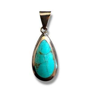 Made in Thailand this stunning turquoise pendant is one large piece of turquoise surrounded by high quality craftsman silver. Smoke free home.