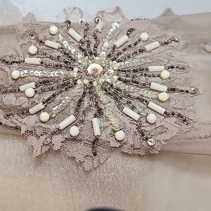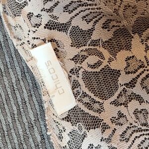 Vest is Open Front, Biege Mesh Front is Beaded With Silver, White, and Black Beads, and Clear Sequins, Back is Biege Lace, Chico's Size 0, = Regular Size Small.