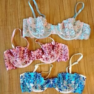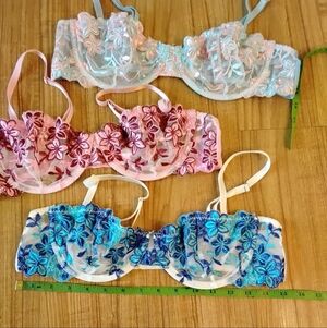 NWOT Floral Lace Underwire Bra Trio – Vibrant & Feminine (No Brand) Size Large