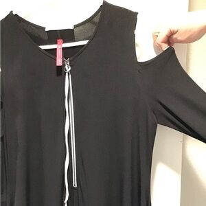 IC by Connie K Knit Round Neck Cold Shoulder Long Sleeve Harem Jumpsuit Black S