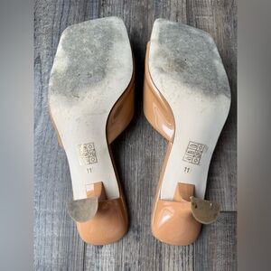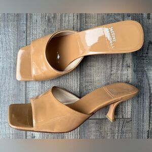 Jeffrey Campbell Mr Big Camel patent leather kitten heel mules in a size 11. Perfect for versatile styling with a dress, jeans or skirts. Slip-on design for easy wear.