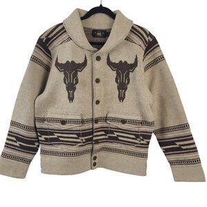 RRL Ralph Lauren Southwestern Shawl Collar Cardigan Beige Brown Wool Blend M