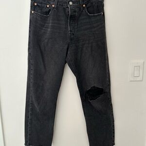Women Levi’s Wedgie Straight Black Jeans with Ripped Detail