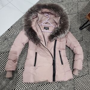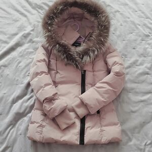 MACKAGE Soft Pink Adali Silver Fox Fur Signature Collar Down Coat