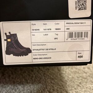 Stylish black boots by Versace. Features gold buckle accents. Chunky sole for added edge.