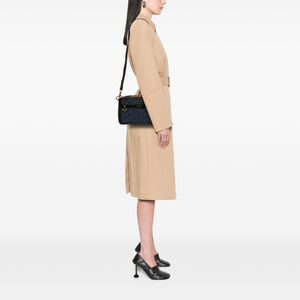 This satchel features a coated canvas body with leather trim, a flat handle, an adjustable and detachable flat strap, a zip around closure, and interior card slots. It carries an AB condition rating.