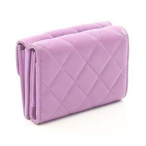 CHANEL Authentic Purple Lambskin Leather Wallet