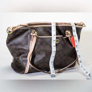 Coach Brown and Tan Signature Shoulder Bag
