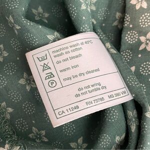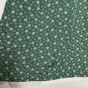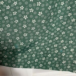 Lighter green patches in 4 areas (laundering mishap). Refer to photos for evidence. It blends in quite well and didn’t notice, until I put lighting on for photos.