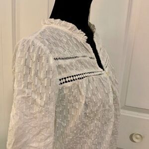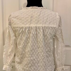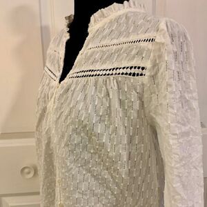 Loft White Cotton V Neck Long Sleeve Ruffle Trim Top Small