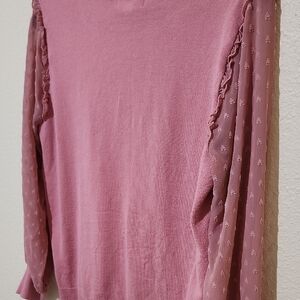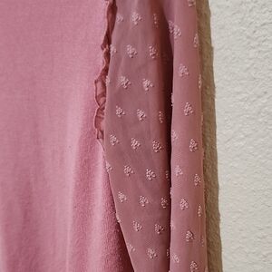 Pink Crew Neck Sweater with Sheer Sleeves