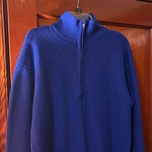 Rich cobalt blue zip up mock neck sweater dress. Perfect over leggings. Waist measures 22.5 inches wide and from the top of the mock neck to the bottom hem of the dress is 38 inches long