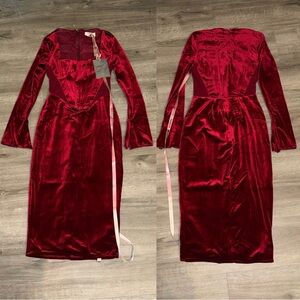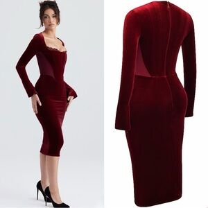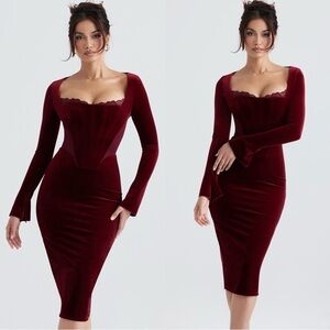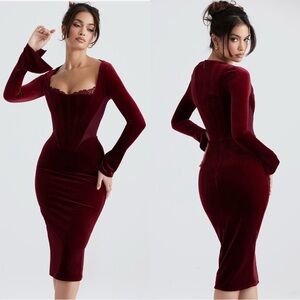 House of CB Solaine Wine Velvet Corset Dress