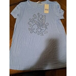 JULIA S/M Teeshirt Butterfly Baby Blue Short Sleeve