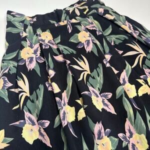 Pink Martini Pleated Cotton Floral Skirt. Retro style pleated skirt. Black fabric with purple and green flowers. Fully lined. 100% cotton. Zipper back. Womens size Small. Waist, laying flat 13”. Length 22.5”.