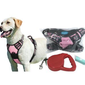 Eagloo Dog Harness Pink Black L No Pull Harness Reflective + Retractable Leash