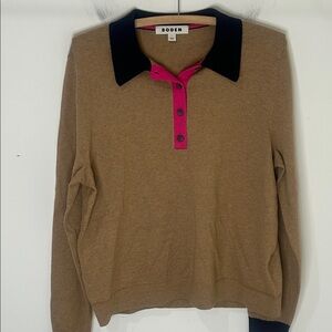 BODEN Estelle Henley Sweater Camel Melange Size Large