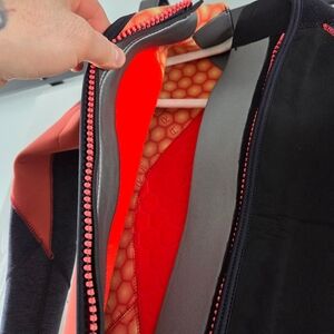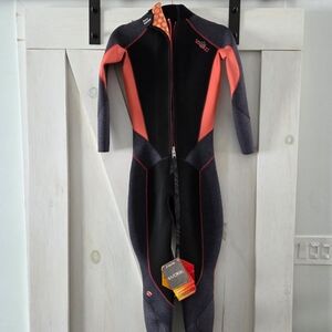 Experience comfort and style with the Women's Wetsuit. Featuring a sleek black and red design, this wetsuit is perfect for your aquatic adventures.