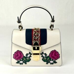 Gucci Sylvie Embroidered Top Handle Mini Bag - White Leather - Rare & Authentic
