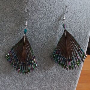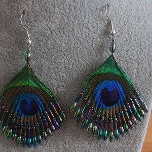 Add a splash of color with these vibrant green and blue feather earrings. Perfect for any occasion.