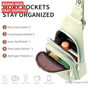 Vegan Leather Crossbody Bag Adjustable Strap Multi-Pocket Fanny Pack