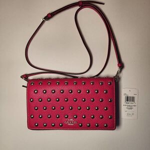 NWT Coach CM851 Anna Foldover Clutch Crossbody with Rivets Pebble Cerise Pink
