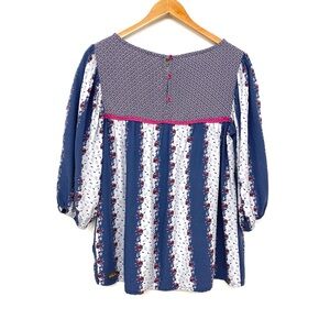 Matilda Jane Blue & Pink Floral Peasant Top Women’s US S Balloon Sleeve Boho