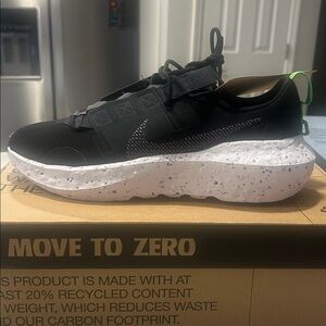 Sleek black Nike sneakers featuring a unique white speckled sole. Ideal for everyday style.
