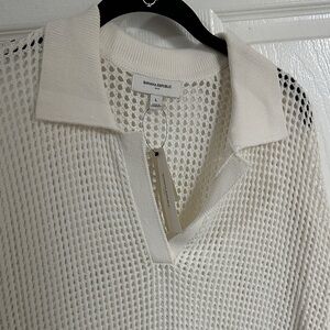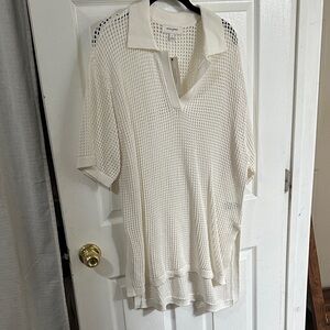 Chic cream knit tunic with a stylish collar. Perfect for layering or standalone wear. Brand new. 35 inches long in back, 31.5 inches long in front, 19 inches pit to pit