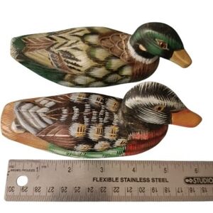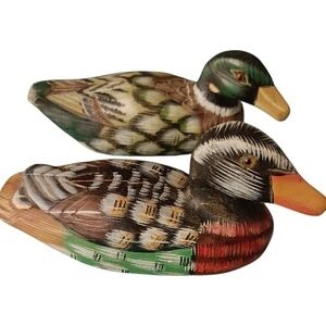 Add charm to your home with this artistic handpainted wooden duck pair. Featuring rich green, brown, and red colors, these pieces bring a natural elegance to any room.