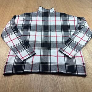Tahari Plaid Mock Neck Sweater Women’s Large Red Navy Knit Preppy Academia