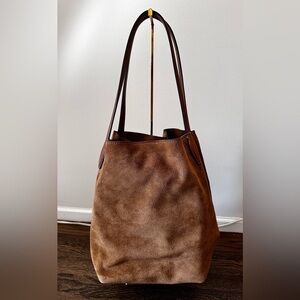 Madewell Soft Grain shopper Tote in Dried Acorn Suede.suede is very soft. Has a clip and ring to close bag. With magnet snap too. Good condition as photographed. Never worn and tags are attached. • 8 1/2"W x 121/2"H• 91/4" handle drop• Magnetic closure• Shoulder straps• Interior slip wall pocket• Canvas lining• suede