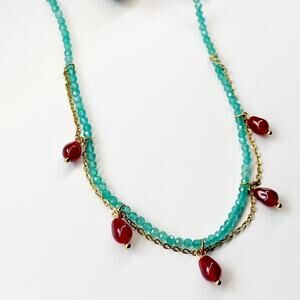 Features: gold plated stainless steel, small glass crystal beads and semiprecious stone