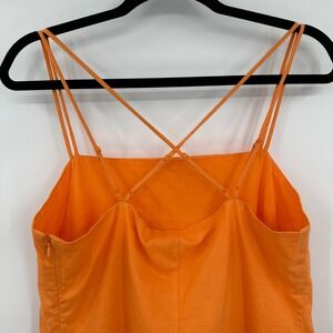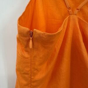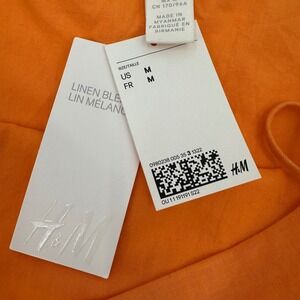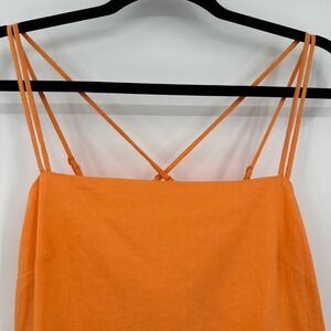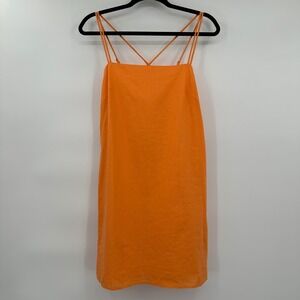 H&M Tangerine Orange Linen Blend Mini Dress Crisscross Retro Size Medium NWT