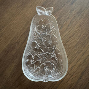 Delicate pear-shaped silhouette with raised floral detailing and textured glass finish. Soft romantic energy with cottagecore charm. Perfect as a trinket dish, jewelry tray, or decorative accent.