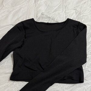 Dark grey lululemon ebb to street cropped long sleeve top