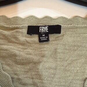 Frye Womens Pointelle Knit Scalloped Cardigan Sweater Beige Size M 100% cotton