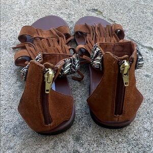 Steve Madden Giaani Brown Fringe Beaded Gladiator Zip Sandals Women's Size 8.5