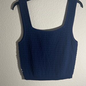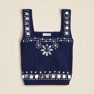 J. Crew Sweater-tank Sz L hand-embellished mirrors Navy Blue Crochet Floral Top